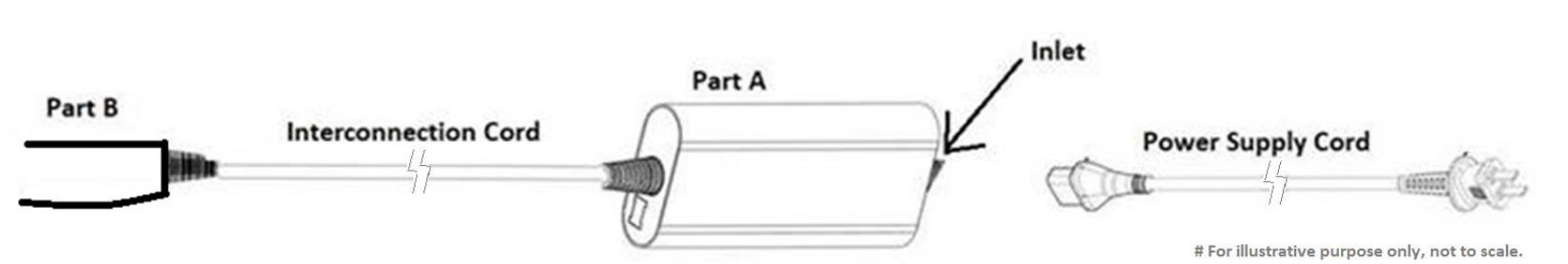 - 整個器具(包括 A 部分、互連線和 B 部分)設(shè)有器具插座,電源線組的軟線中沒有開關(guān)、自動控制裝置或電源。